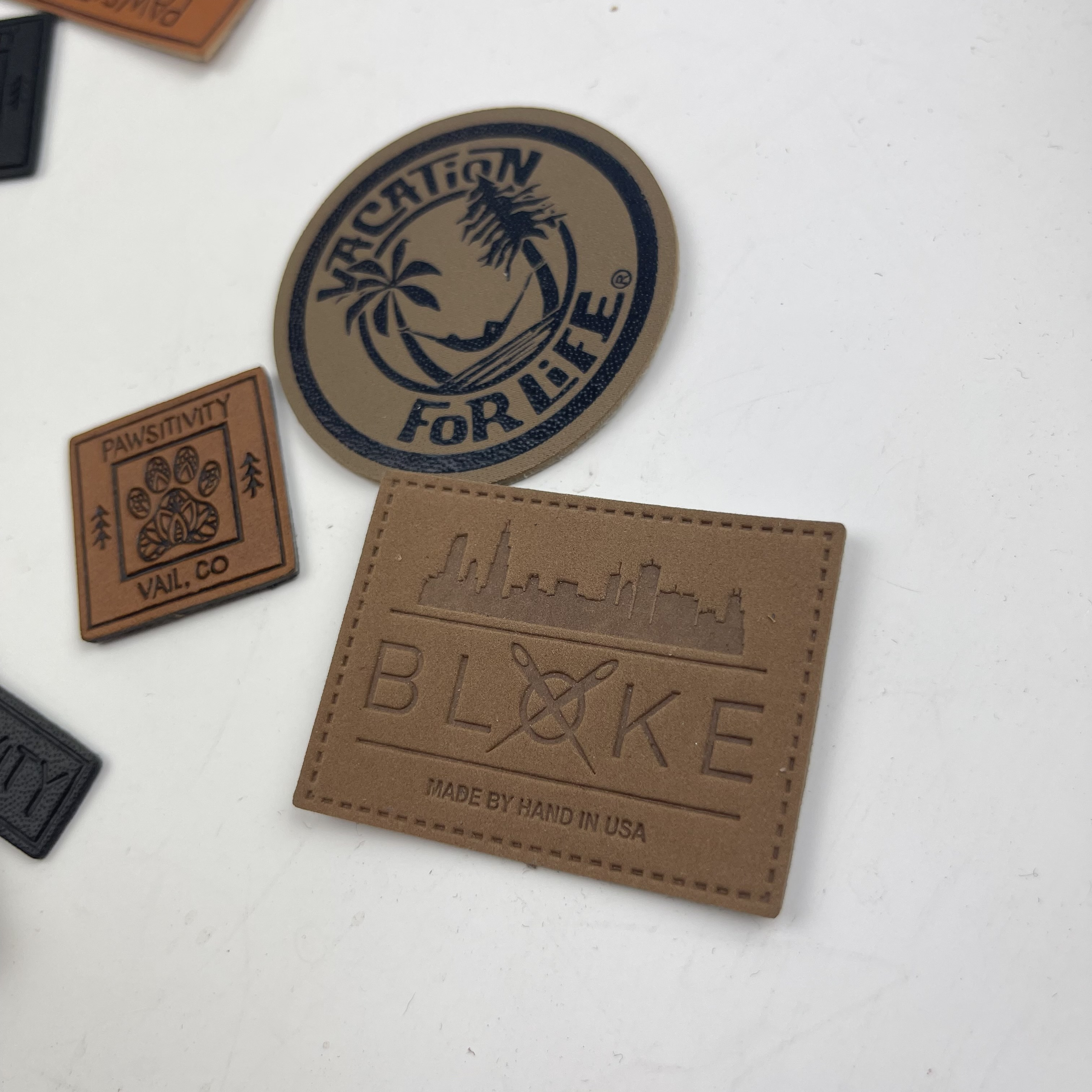 china custom silk screen printed debossed garment accessories brown leather patch for clothing