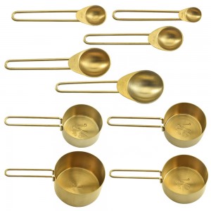Gold Stainless Steel Measuring Cups And Spoons Set 9 Pieces Engraved Measurements Measuring Cup Spoon